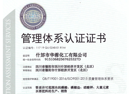 什邡市華蓉化工有限公司原名什邡華蓉科技有限責(zé)任公司,位于磷礦資源豐富的四川省什邡市,距成都60公里,交通運(yùn)輸便利,是一家專(zhuān)業(yè)生產(chǎn)、研發(fā)精細(xì)磷化工系列產(chǎn)品的大型生產(chǎn)企業(yè)。生產(chǎn)設(shè)備先進(jìn),技術(shù)研發(fā)團(tuán)隊(duì)強(qiáng)大,現(xiàn)公司占地面積約30000平方米,擁有5條生產(chǎn)線(xiàn),主要生產(chǎn)大量元素水溶肥、磷酸二氫鉀、磷酸二氫銨、磷酸氫二銨、硝酸鉀、磷酸脲以及磷酸,年總產(chǎn)量為100000噸以上。公司資質(zhì)齊全,管理規(guī)范,已取得安全生產(chǎn)許可證、ISO9001:2015質(zhì)量管理體系認(rèn)證、食品生產(chǎn)許可證、工業(yè)產(chǎn)品生產(chǎn)許可證、自營(yíng)進(jìn)出口經(jīng)營(yíng)權(quán)進(jìn)出口證書(shū)以及出口歐盟國(guó)家部分產(chǎn)品的REACH證書(shū)。